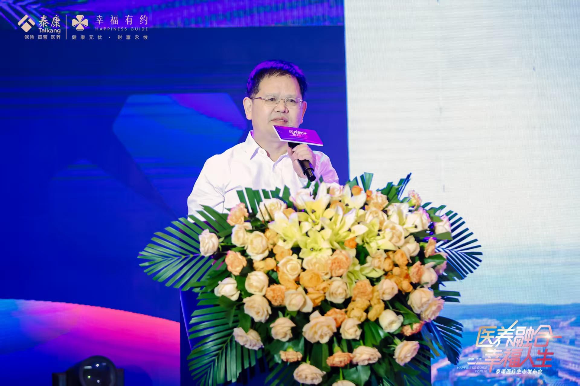 泰康医疗副总裁兼首席运营官肖万超带来泰康医疗竞争力发布报告,介绍泰康医疗资源的优势及为客户提供的高品质服务,体现了泰康医疗生态的强大能量。他强调,泰康医疗秉持“尊重生命、关爱生命、礼赞生命”的核心价值观,践行“创建三甲医院,医教研一体化发展,打造以老年医学、健康管理、慢病管理为特长的长寿医院,形成医养融合、医险结合特色”的战略定位。泰康通过“年金保险+养老资源”、“健康保险+医疗资源”打造长寿闭环和健康闭环,推出“长寿有约+健康有约”的“双有约”解决方案。在全国布局泰康仙林鼓楼医院、泰康同济(武汉)医院、四川泰康医院、宁波泰康脑科医院、深圳前海泰康医院五大医学中心已全部投入运营,提供超5000张医疗床位。泰康医疗打造专科专家团队,构建优势学科群,依托武大泰康医学院和泰康生命医学中心,搭建高起点科教平台,加强学科梯队建设和学科人才培养。通过五大医学中心与自有专科体系、生态投资合作方资源结合,医险结合、医养融合,为客户提供健康管理、专科诊疗、康复医疗、医疗护理、生活护理、安宁疗护等全流程一站式健康服务体系。