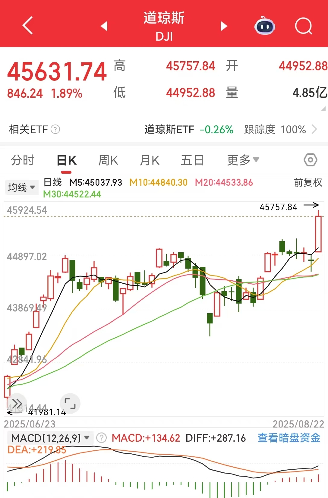 道指涨近850点!鲍威尔暗示9月或降息,美三大股指全线上涨,纳指涨近2%