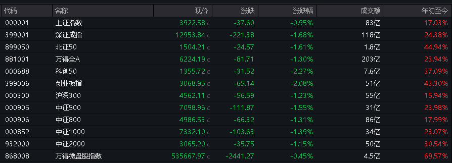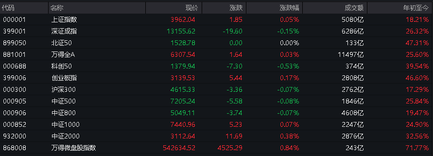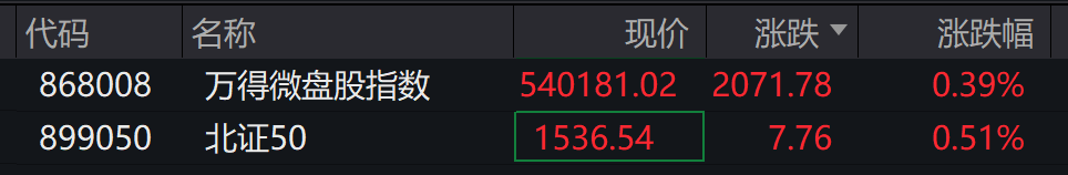 北证50指数和万得微盘股指数率先转涨,其他主要股指跌幅收窄。