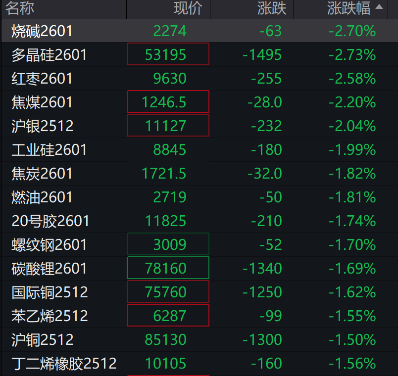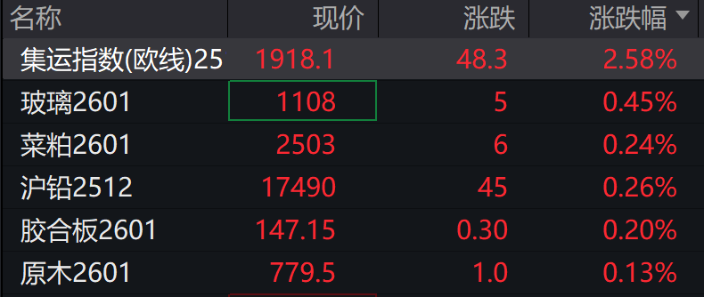 商品期货开盘,集运欧线主力合约涨超2%,玻璃涨超1%。烧碱、多晶硅、红枣跌超2%,沪银、燃料油、苯乙烯、焦煤、国际铜、沪金、沥青、工业硅、碳酸锂、沪铜、20号胶、焦炭等跌超1%。