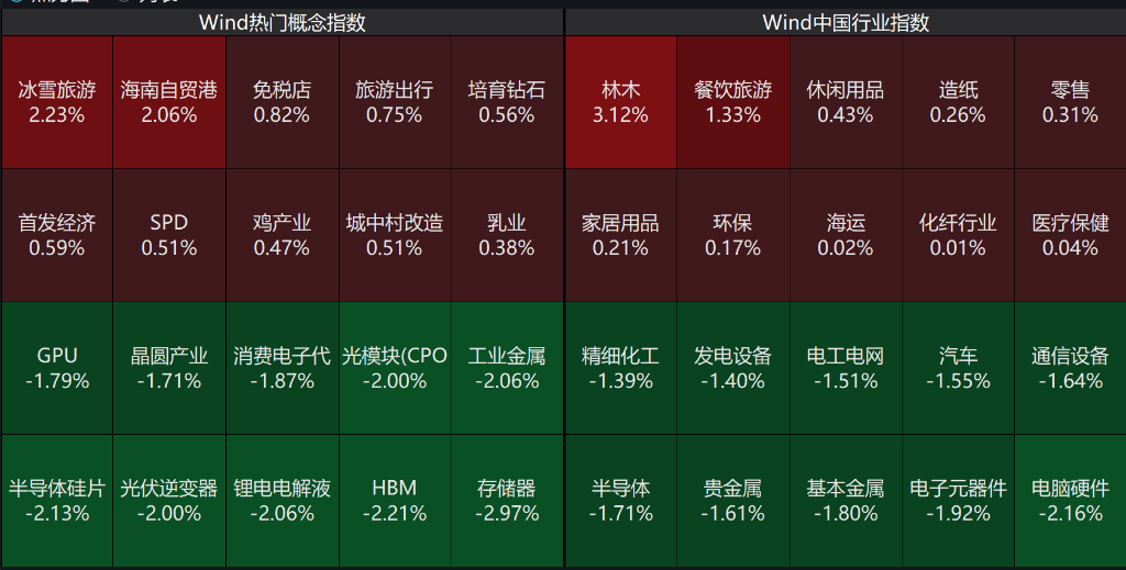 11月5日,A股早间低开回升,沪指、创业板指双双翻红,沪指涨幅0.05%,创业板涨幅0.17%。海南板块集体走强,海马汽车、海峡股份等多股涨停,海南、电网设备、煤炭、大消费等板块领涨;量子科技、创新药、半导体、存储芯片等板块领跌。以下为主要指数情况: