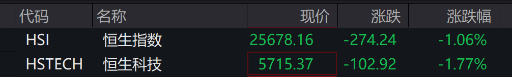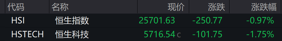 恒生科技指数跌幅收窄至1.6%,此前一度跌近2.9%。