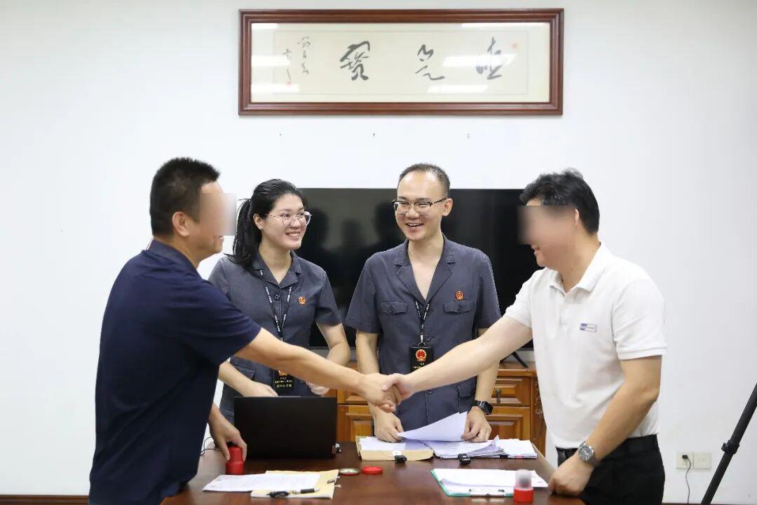 最终,劳资双方现场放下芥蒂,握手言和,劳动者同意削减债务金额并提交解除设备查封申请,公司现场一次性付清劳动者款项,法官通过中小微企业绿色执行通道快速解除机器查封措施。从调解成功握手言和,到所有机器撕下封条全面复工,整个过程仅用了6个小时。